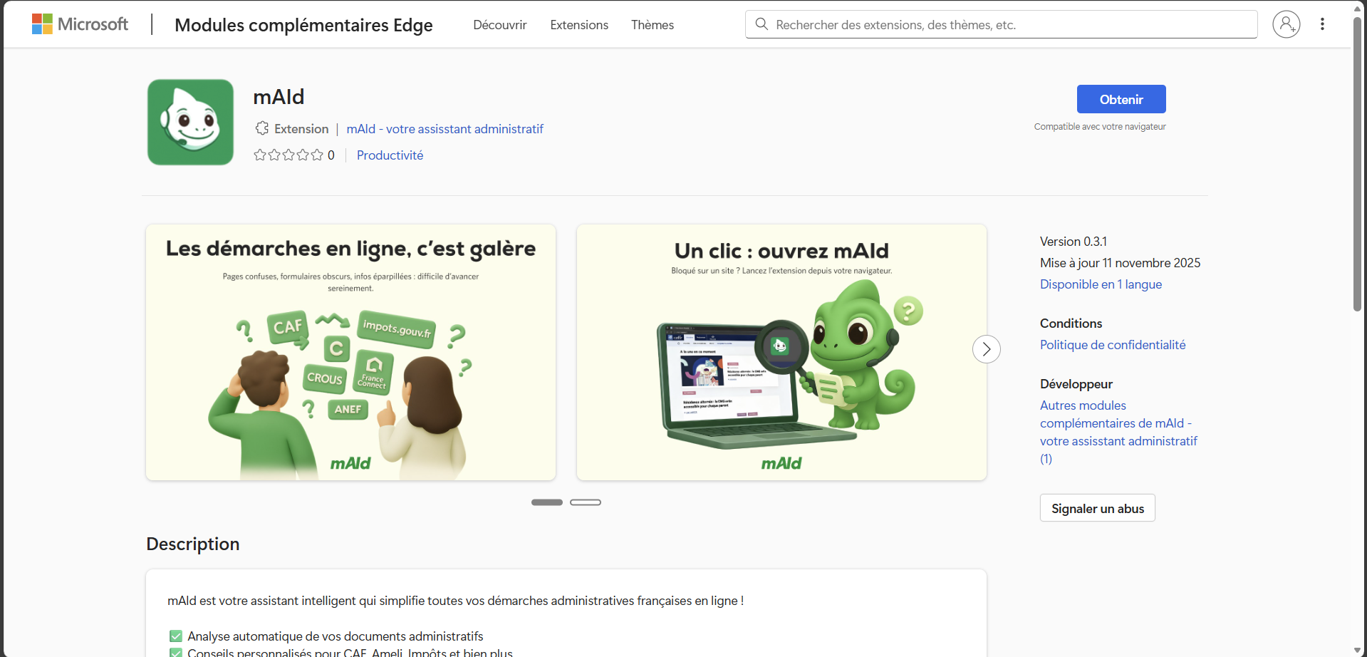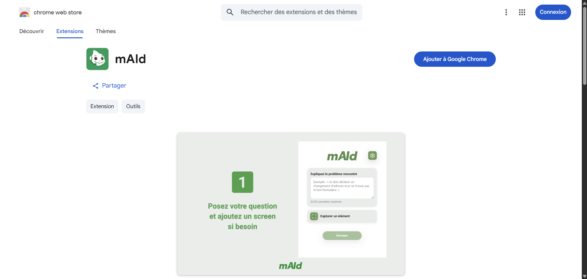 - Cliquez l’icône mAId pour ouvrir l’extension.