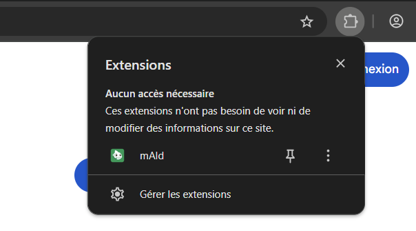 - Dans la barre d’outils, cliquez l’icône puzzle puis Épinglez mAId.