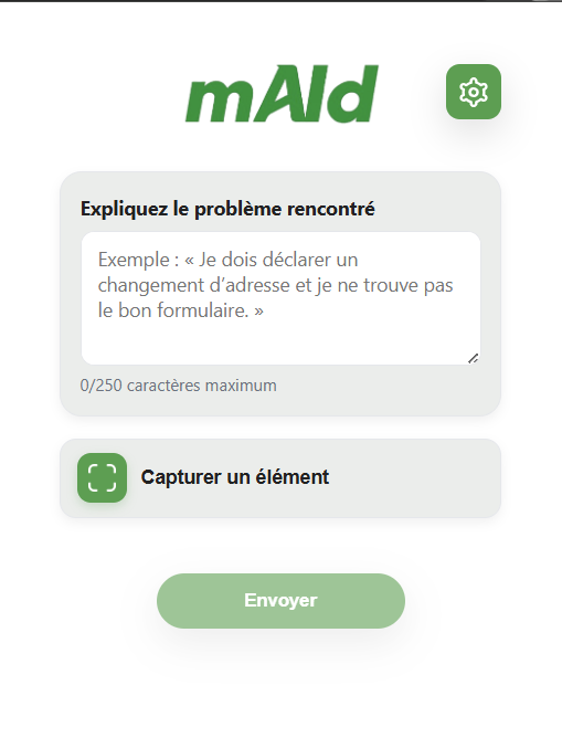 - mAId analyse la page (DOM). Vous pouvez joindre une capture (message d’erreur, bouton introuvable, etc.).